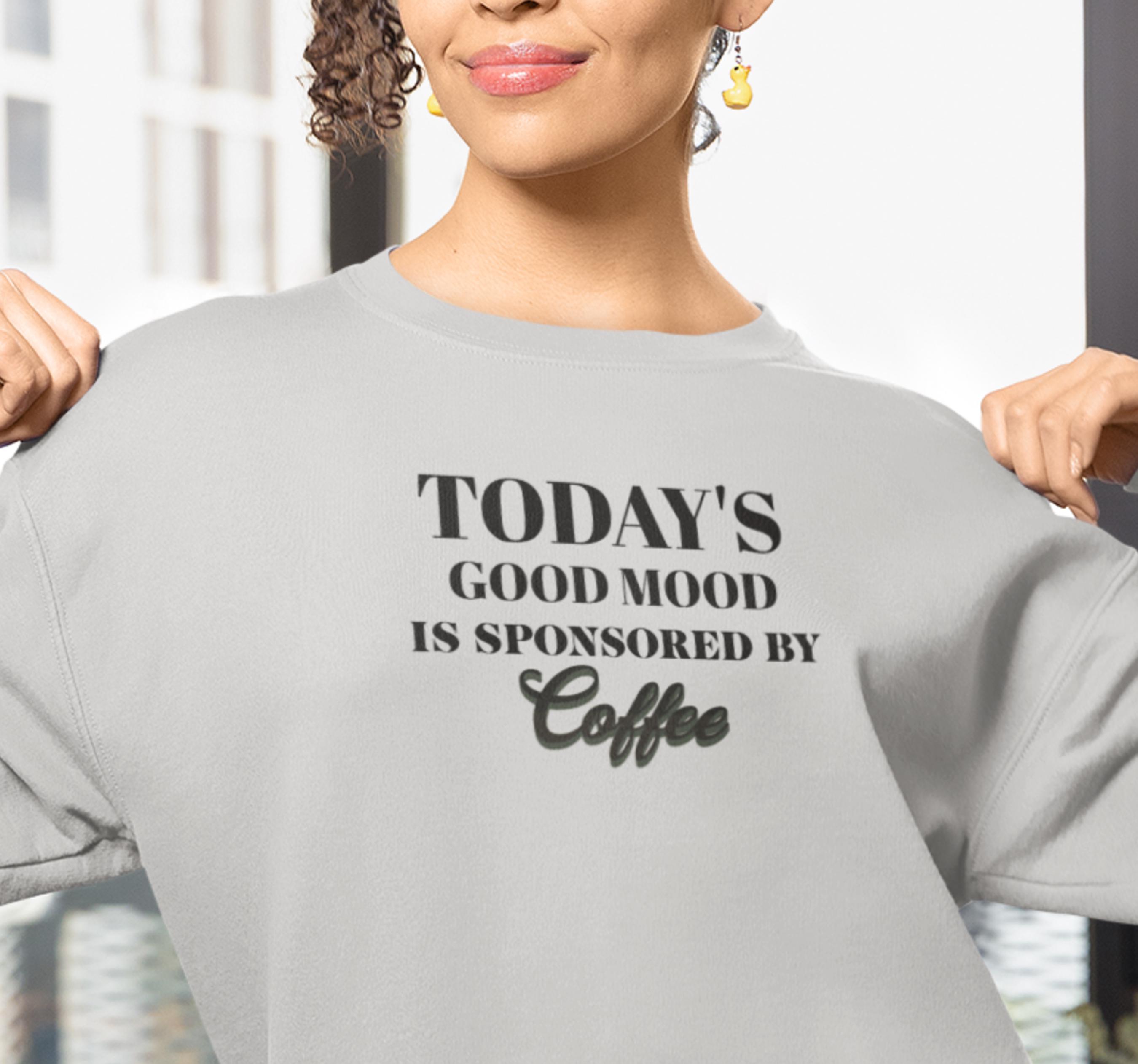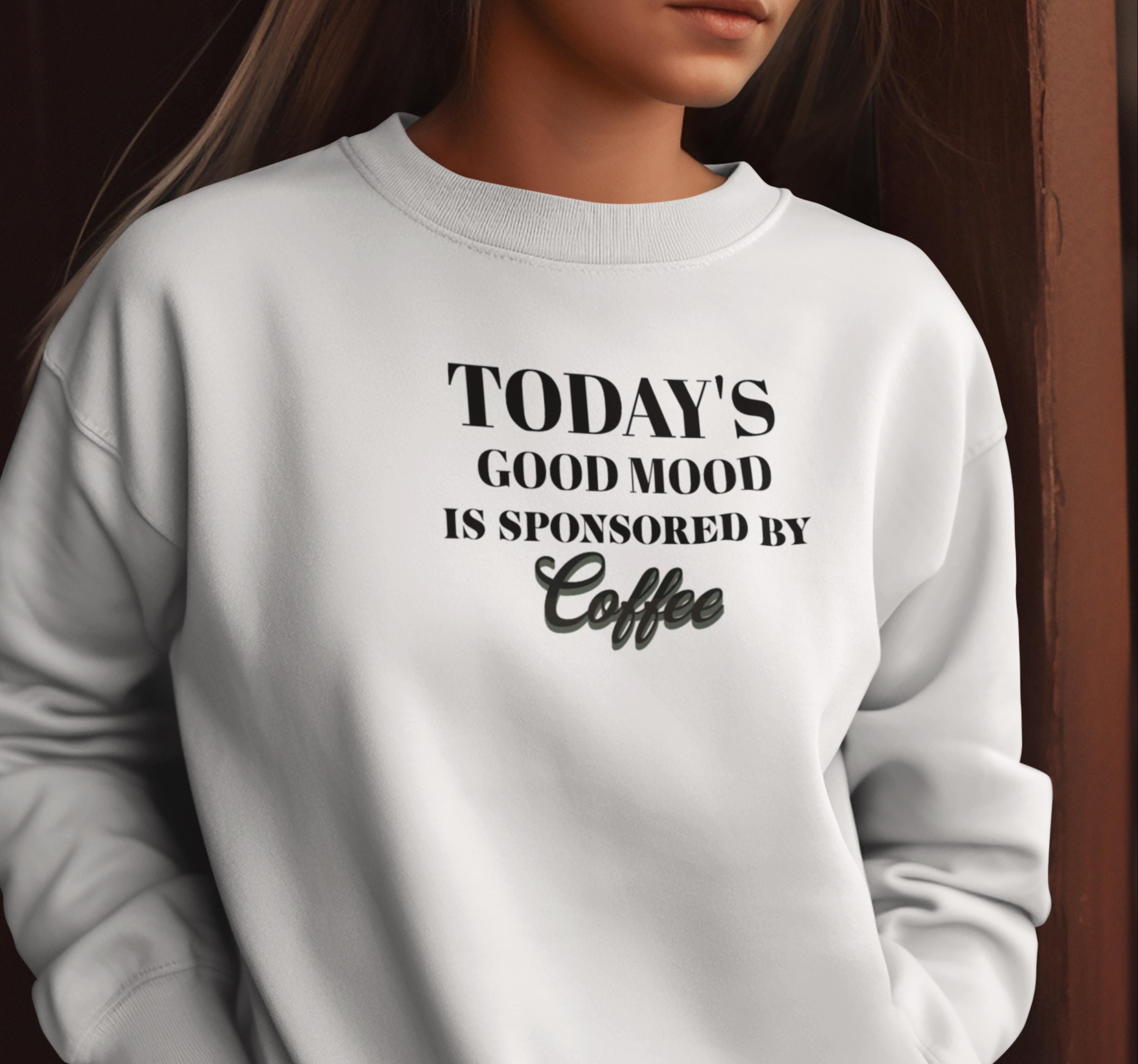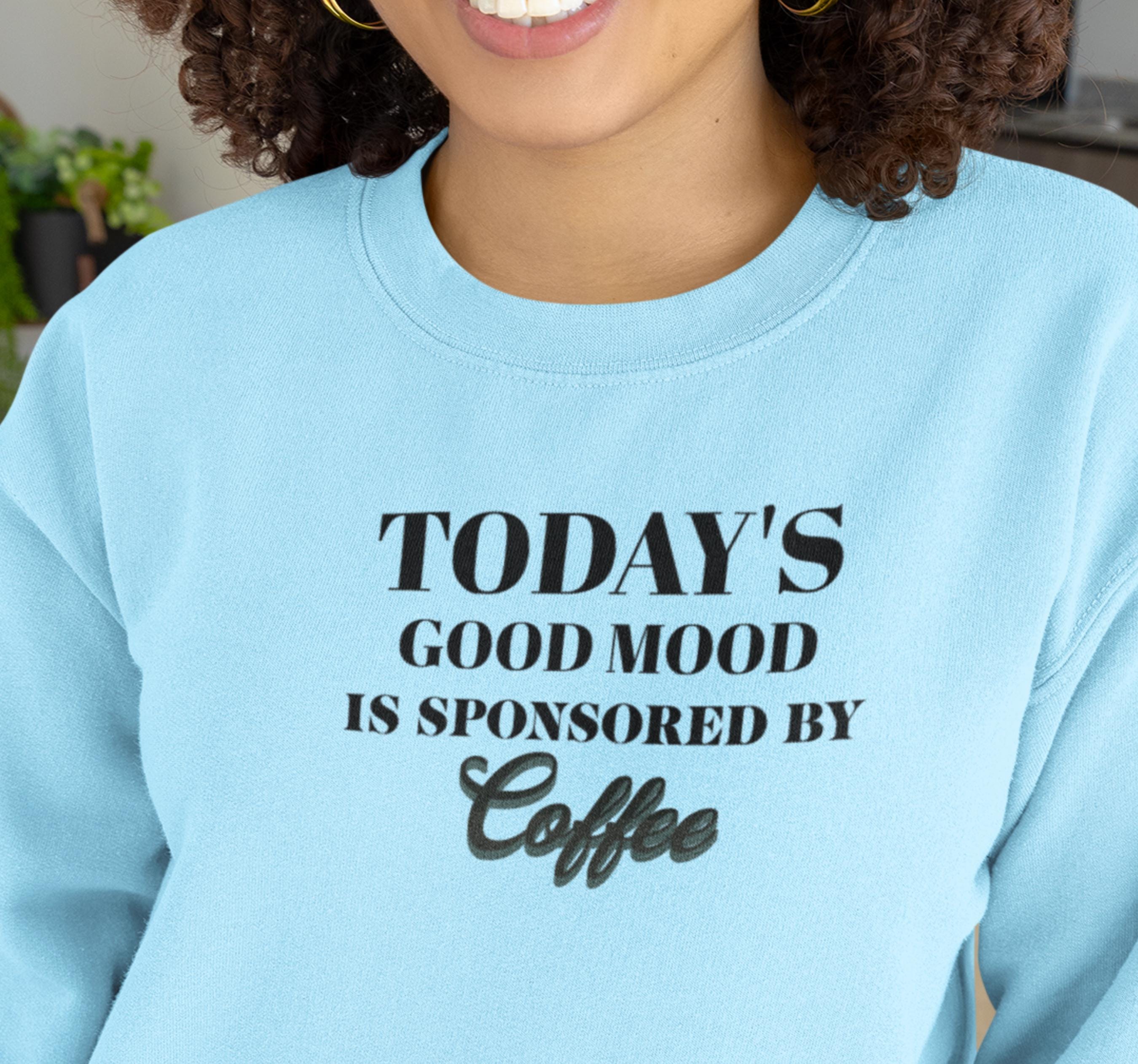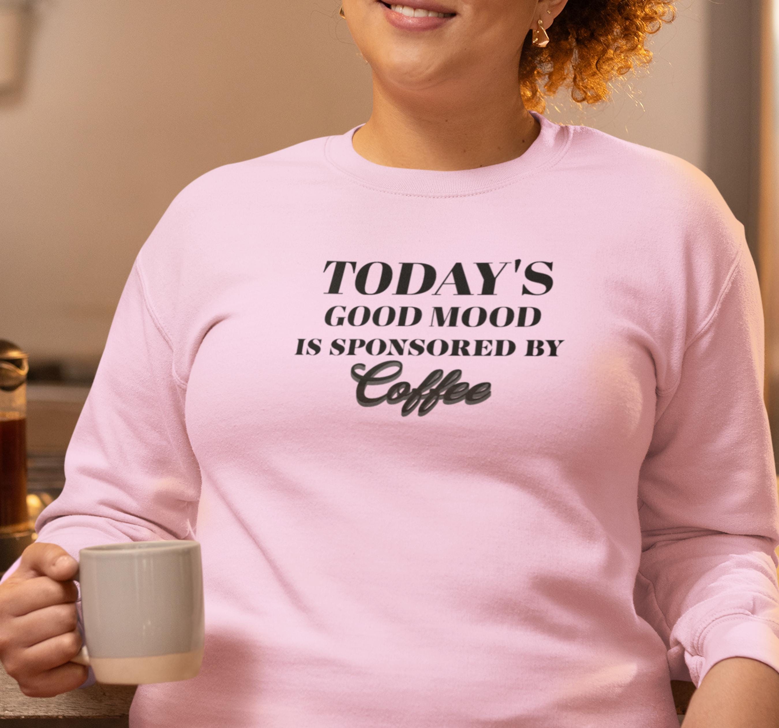 Stay cozy and stylish with this 'TODAYS MOOD SPONSORED BY COFFEE' sweatshirt. Perfect for coffee lovers who want to make a statement and stay warm during the colder months. Ideal for casual weekends or lounging at home. Great for holiday gift-giving or as a treat for yourself.