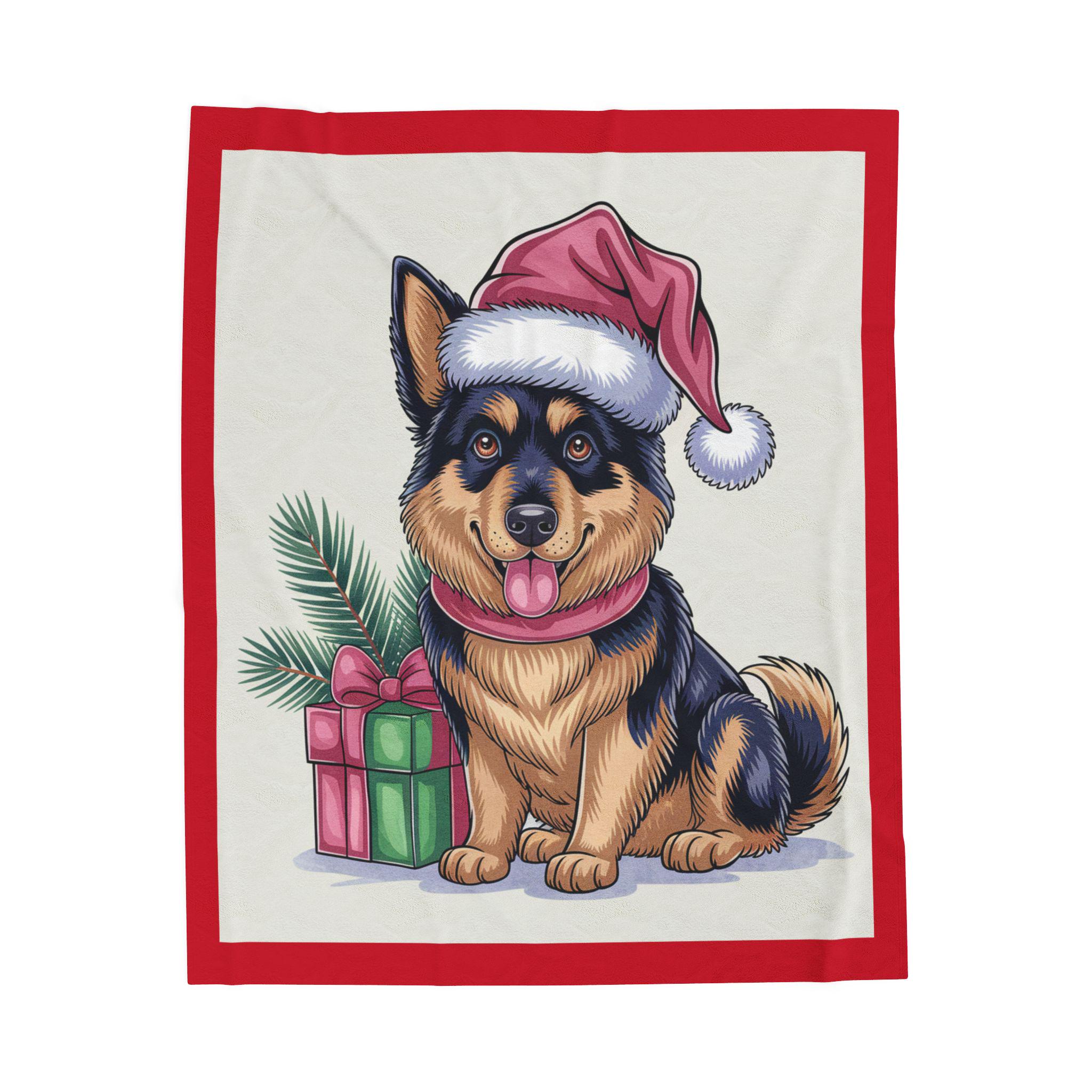 Get into the festive spirit with this velveteen plush blanket featuring a cute German Shepard dog wearing a Santa hat. Perfect for cozying up by the fireplace during the winter holidays, this blanket is ideal for dog lovers and adults looking to add a touch of holiday cheer to their home decor.