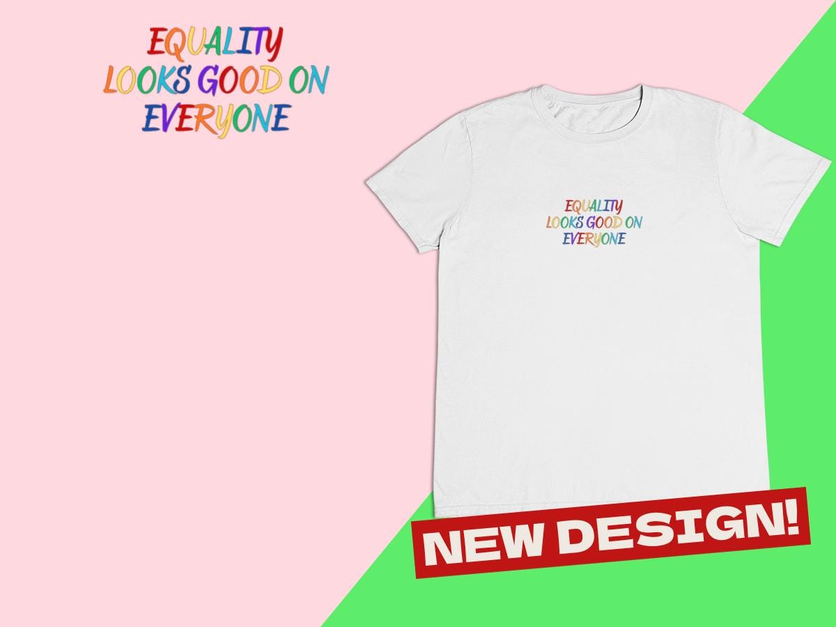 Show your pride and support with this Equality Looks Good on Everyone rainbow shirt. Featuring bold rainbow lettering, it’s the perfect tee for Pride Month, marches, festivals, or everyday wear to spread love and inclusivity. A must-have for allies, activists, and anyone who believes in equality.