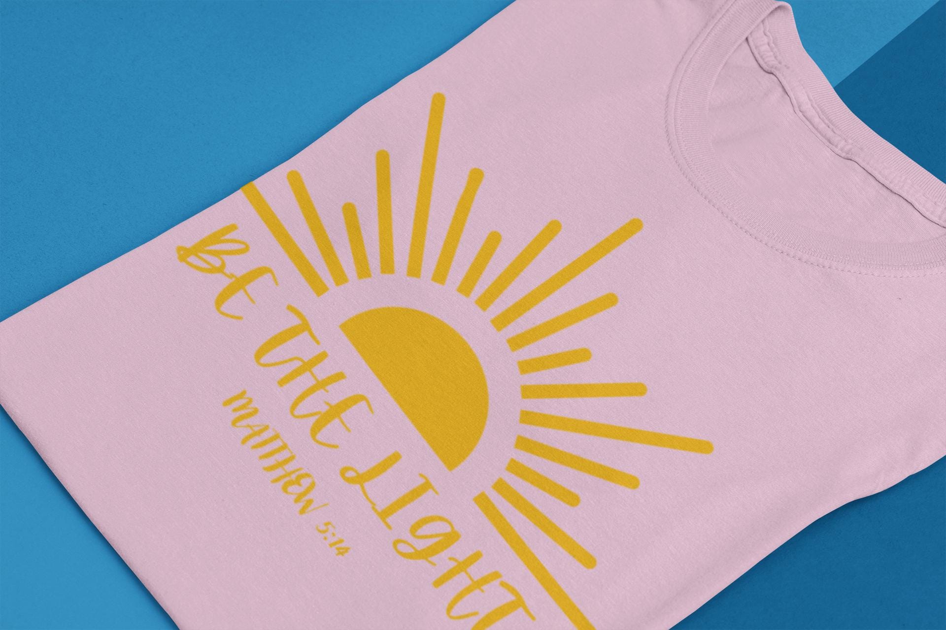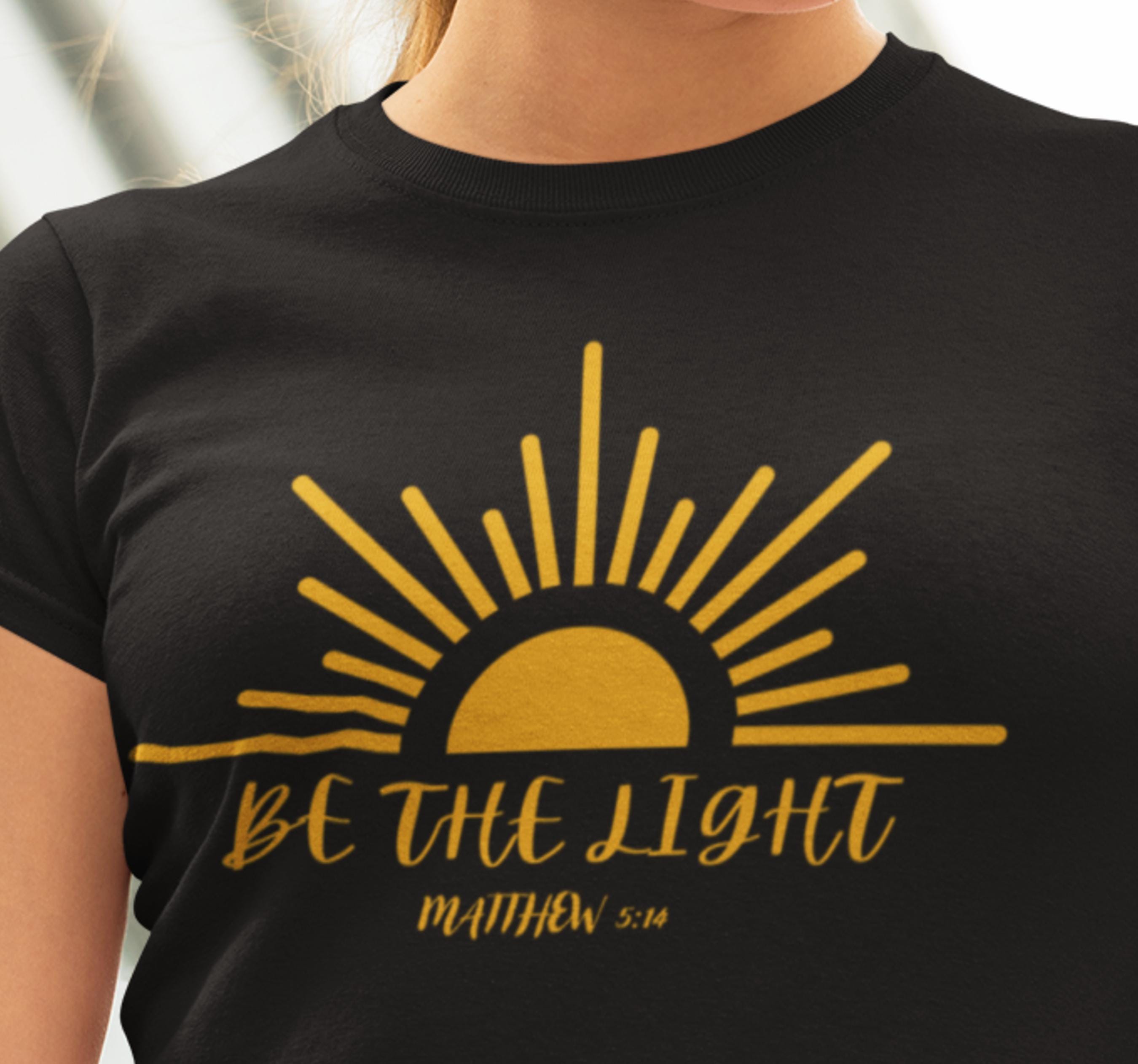 "Be The Light" Matthew 5: 14 Perfect for those who seek inspiration from scripture, this tee is ideal for casual wear or as a thoughtful gift. Relevant for religious holidays and everyday wear.