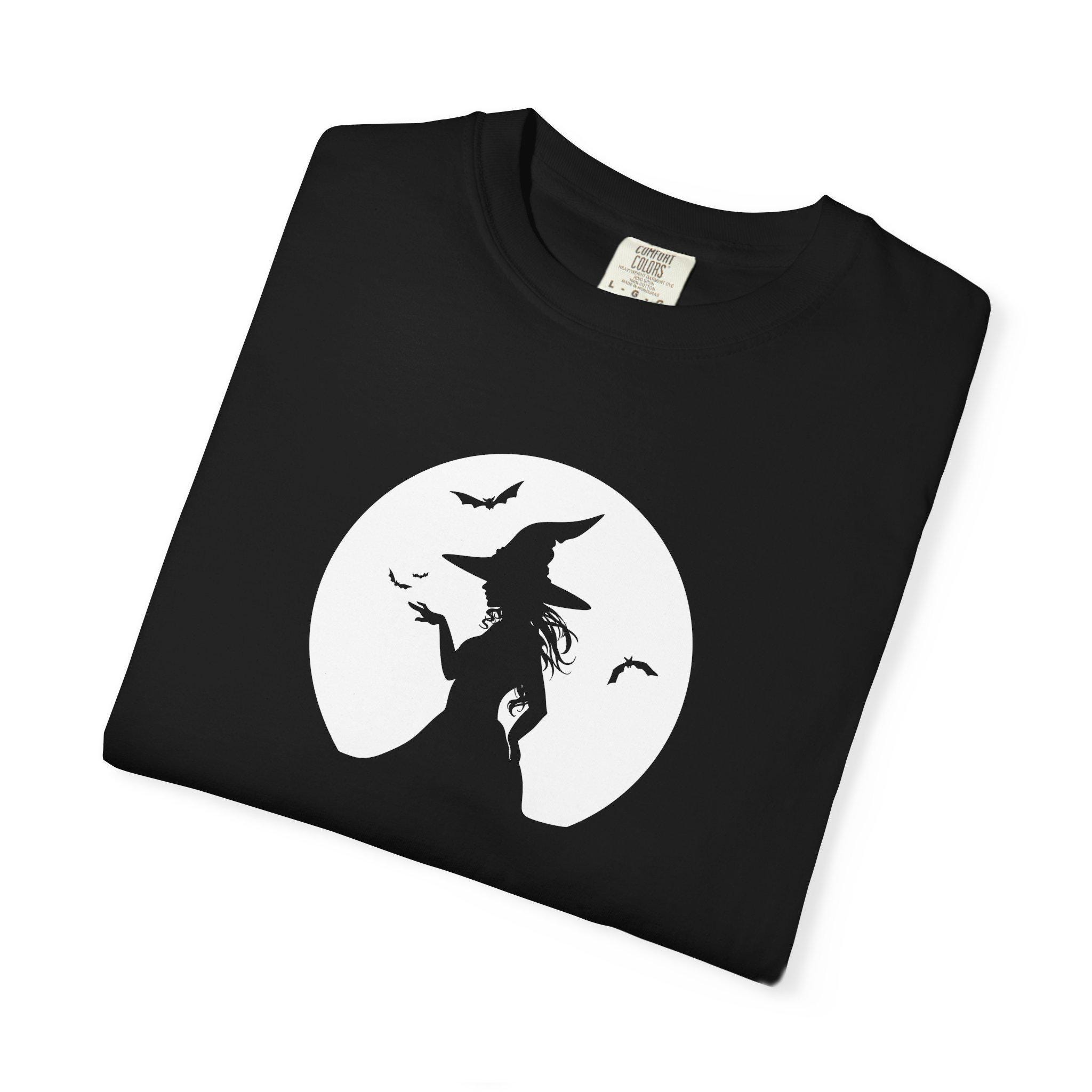 Perfect for Halloween enthusiasts and those who enjoy mystical vibes. This garment-dyed tee is a must-have for anyone looking to add a touch of witchy style to their wardrobe. Great for Halloween parties, spooky season, and everyday wear.