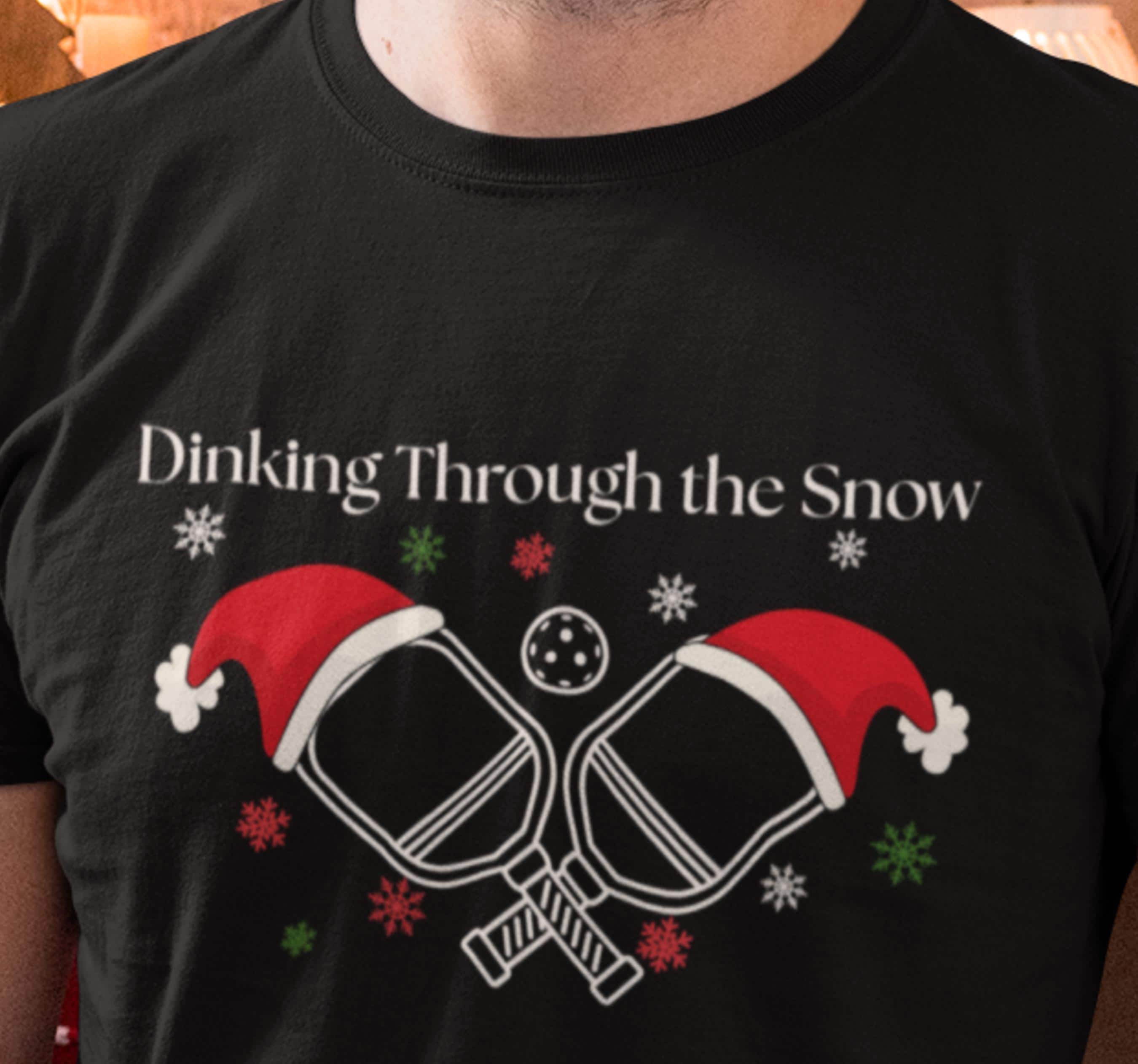 Funny Christmas Pickleball Shirt: Dinking Through the Snow Holiday Tee