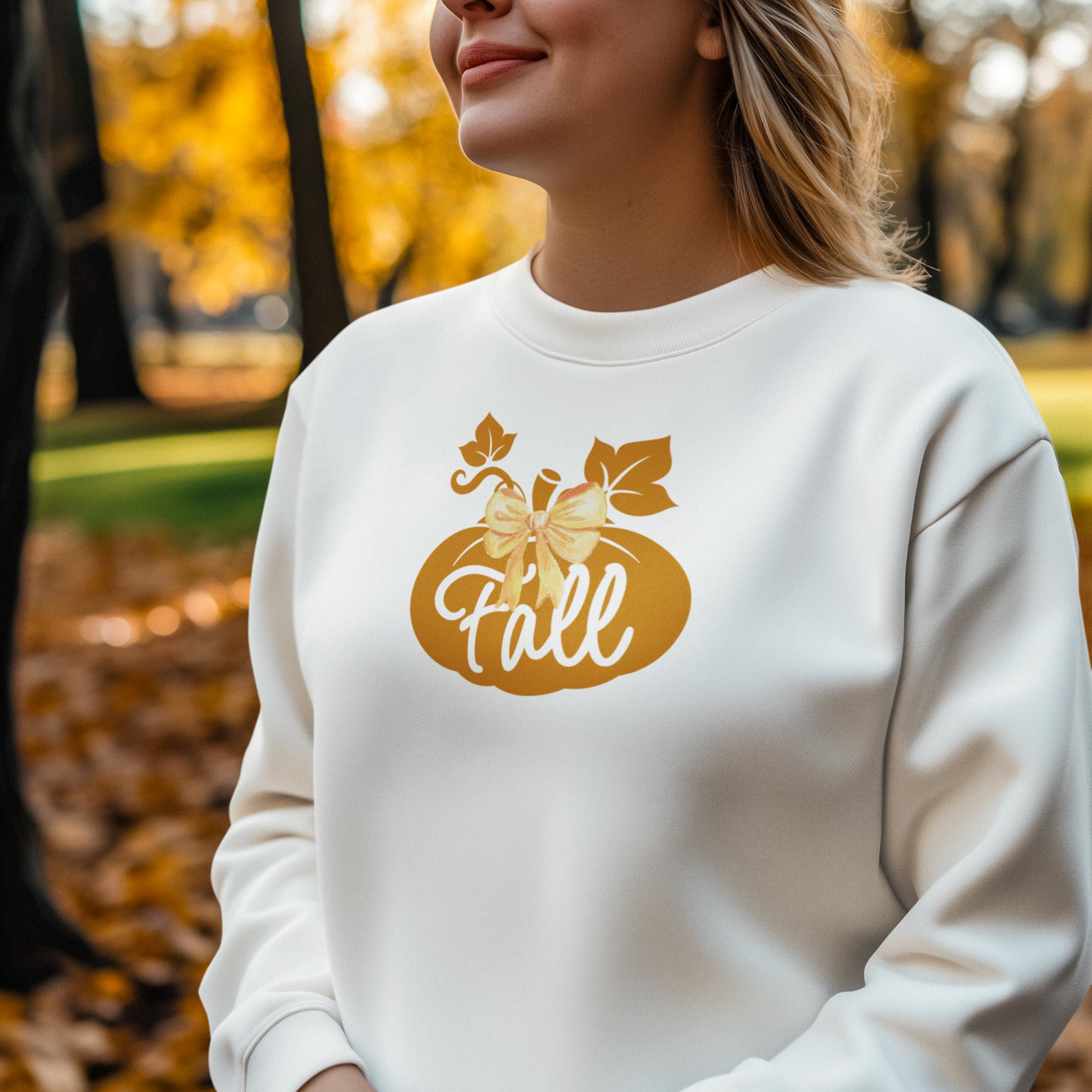Fall Pumpkin Sweatshirt with Coquette Bow - Autumn Cozy Jumper