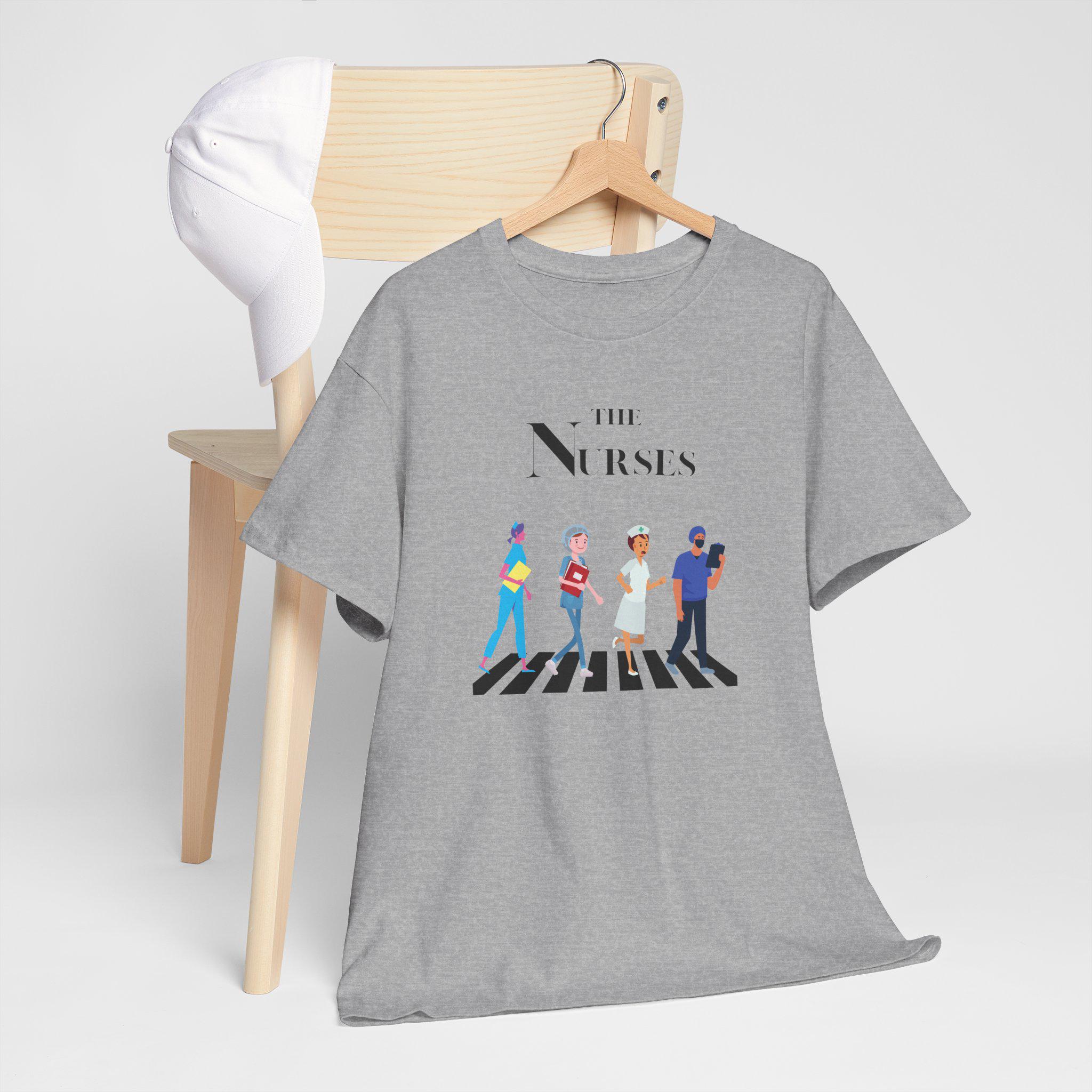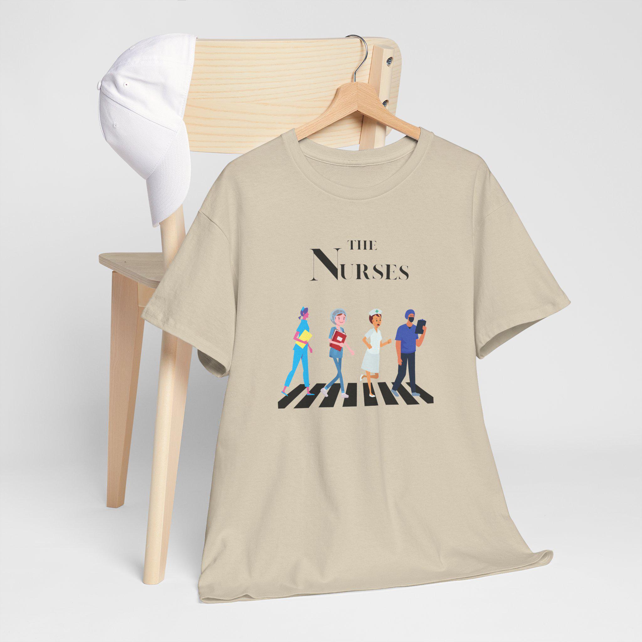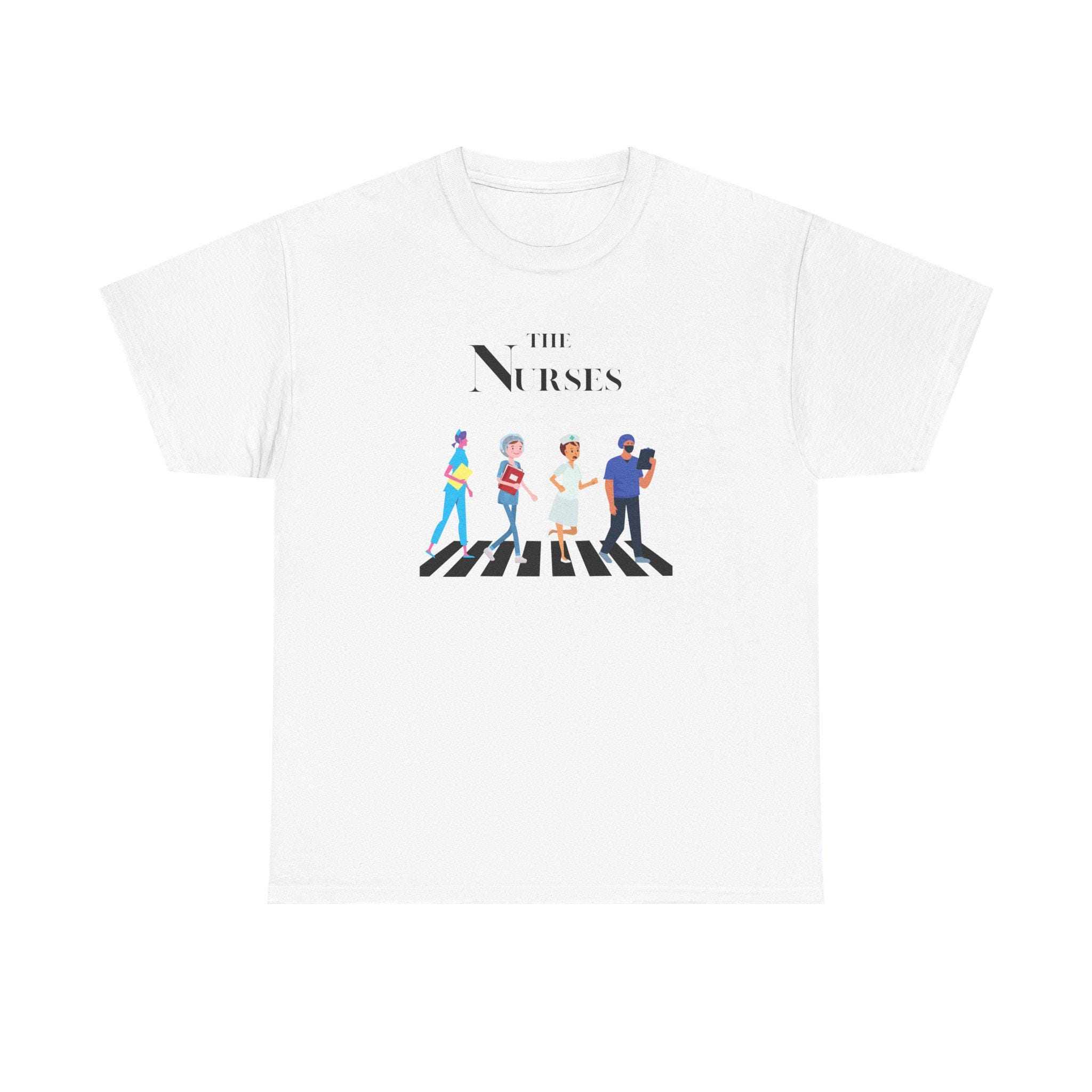 A unique tee featuring a playful twist on The Beatles logo, perfect for nurses with a love for music. This tee exudes a fun and creative vibe, making it a great addition to a nurse's casual wardrobe. Ideal for nurses who enjoy music and want to showcase their personality at work, gatherings, or music-related events.
