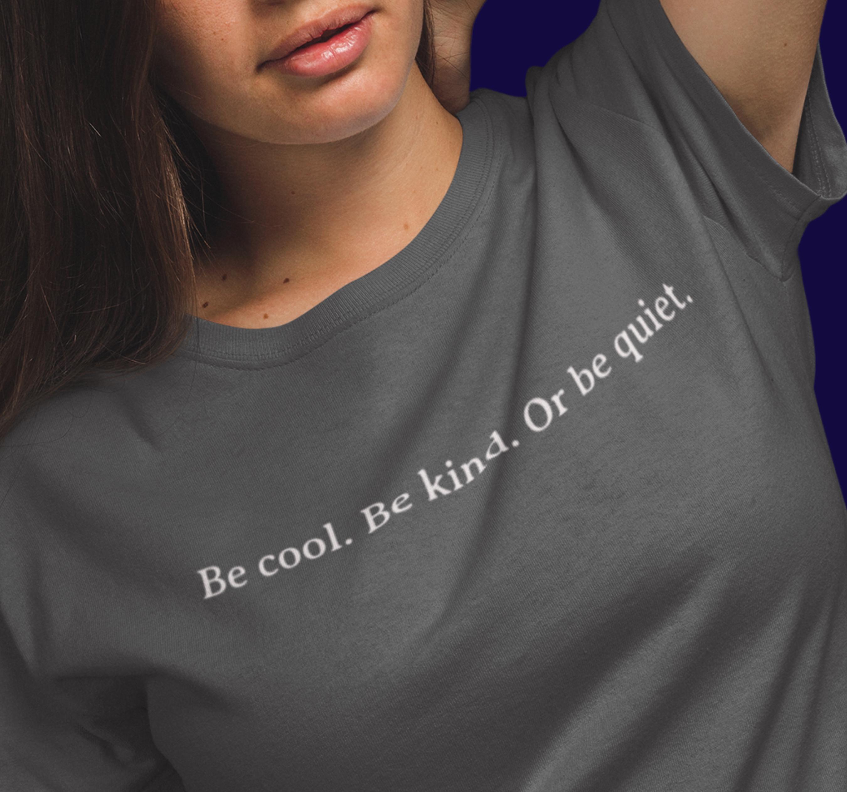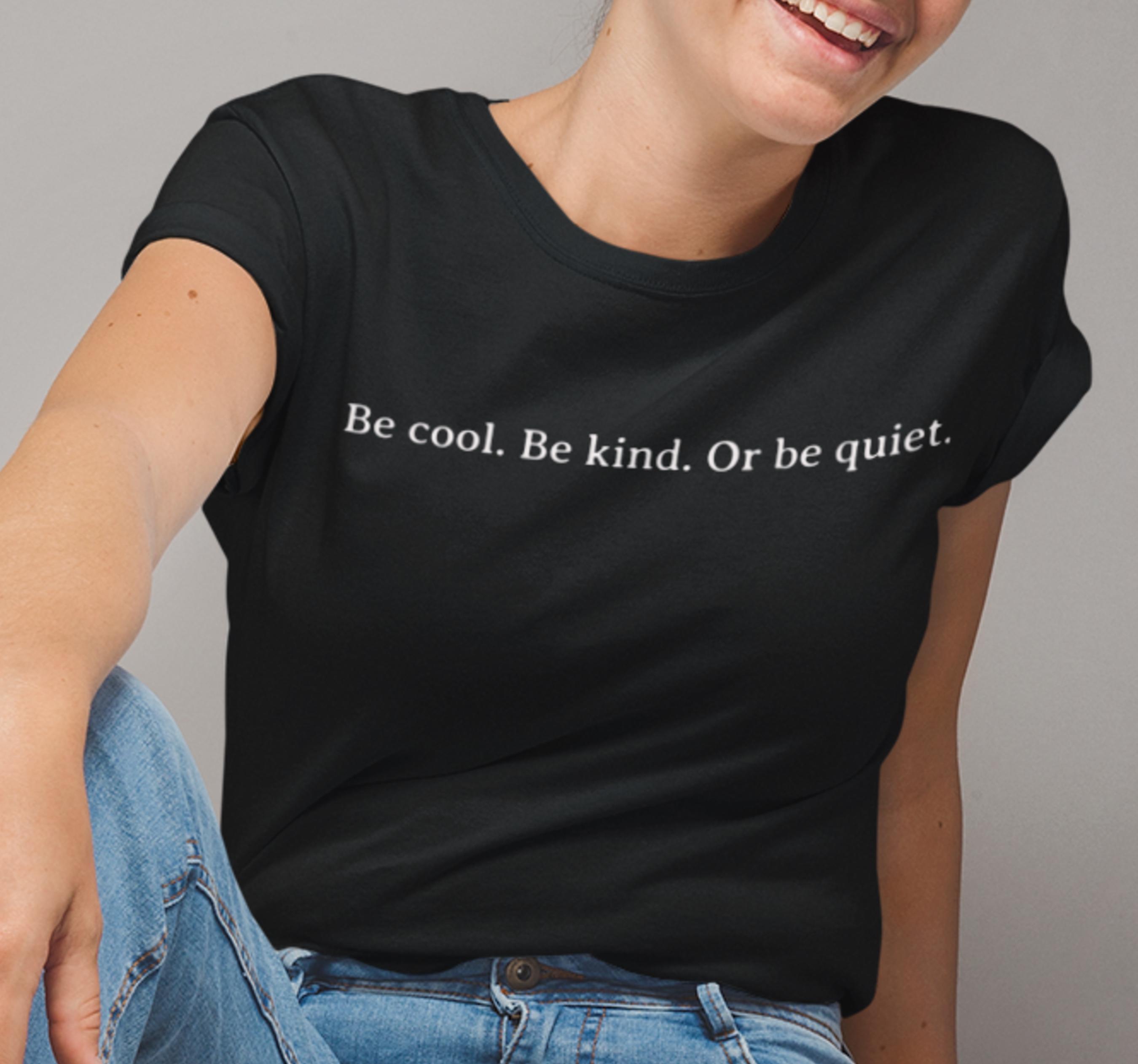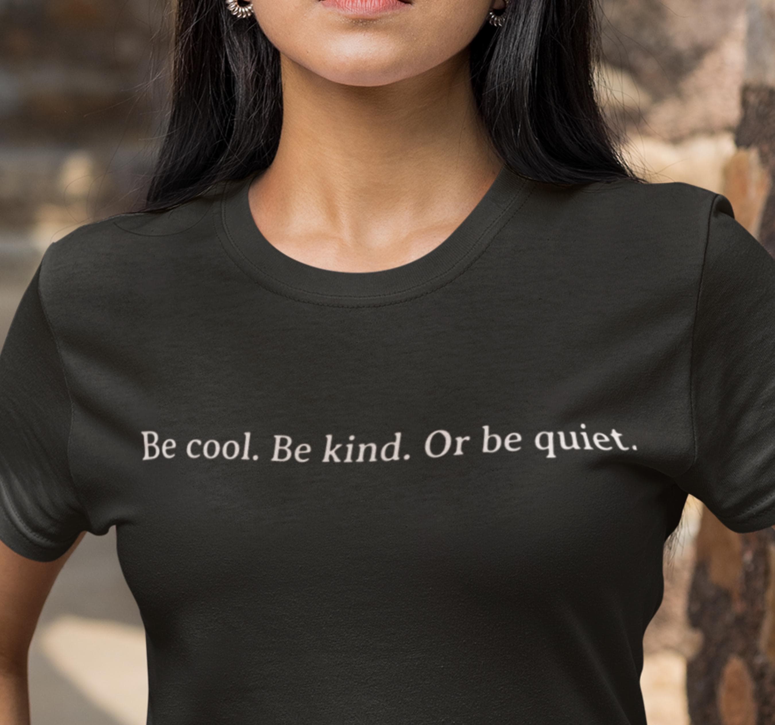 pread positivity without saying a word in this “Be Cool. Be Kind. Or Be Quiet.” t-shirt.