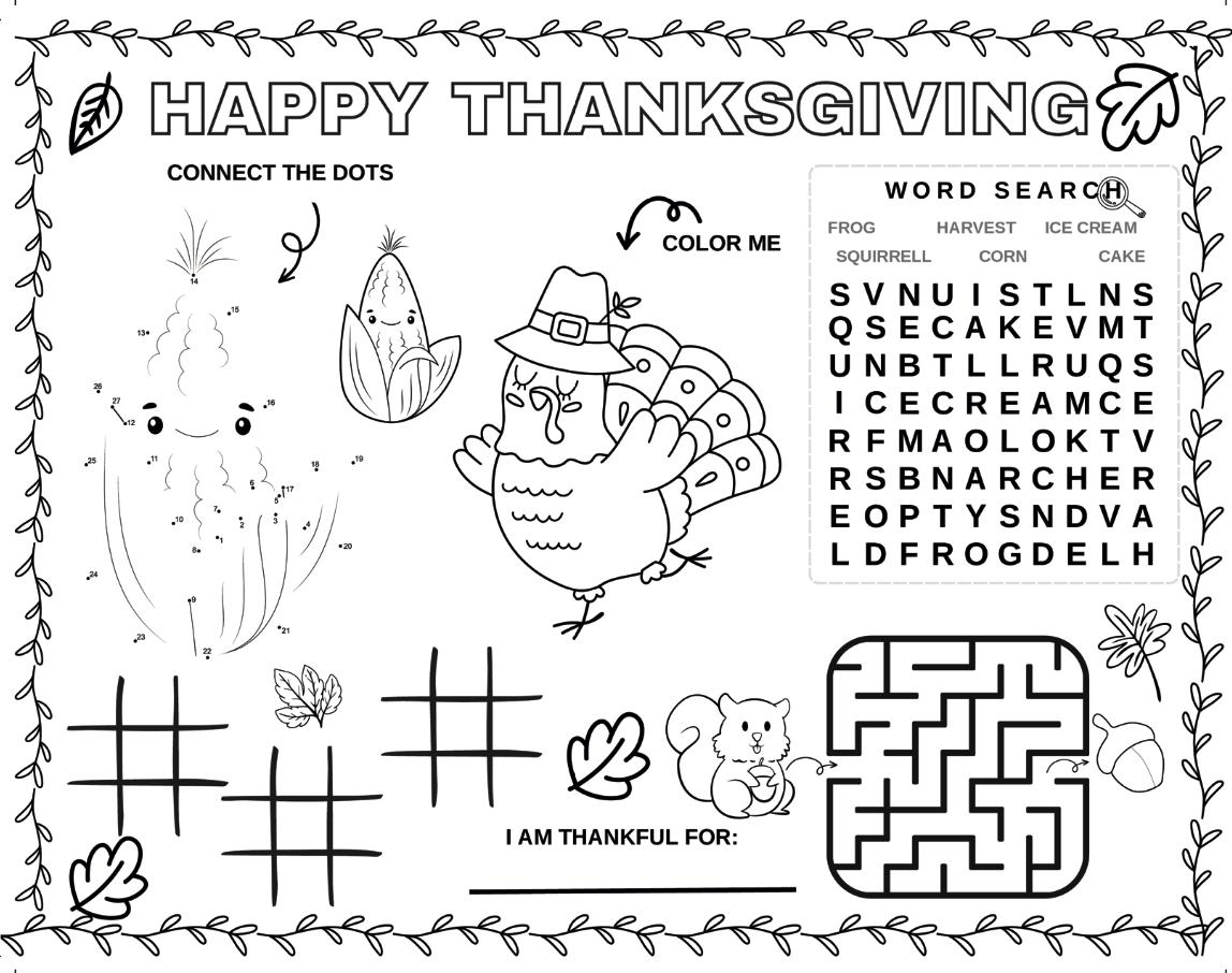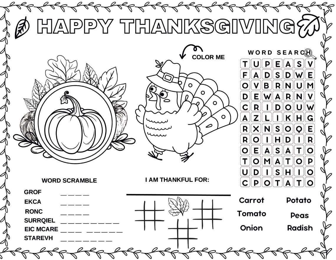 Thanksgiving Activity Placemats for Kids. Instant download and printable. 4 placemats. Keep Kids busy sitting at the Thanksgiving Table with these cute activity mats. Great for entertaining the kids!